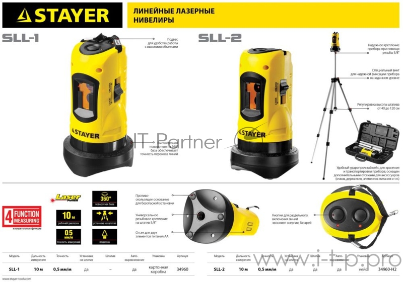 Нивелир лазерный линейный SLL-2, STAYER 34960-H2, штатив, кейс, 10м, точн. +/-0,5 мм/м