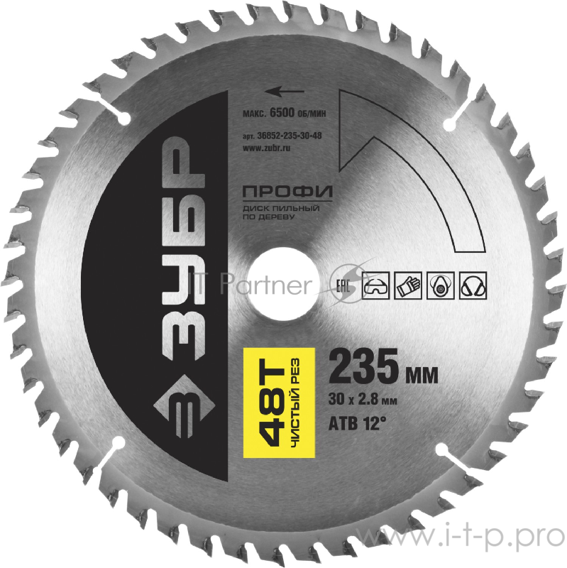 Круг пильный твердосплавный ЗУБР 36852-235-30-48 ПРОФИ чистый рез по дереву 48T 235х30мм