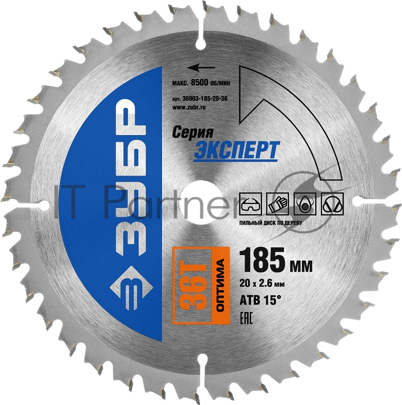 Круг пильный твердосплавный ЗУБР 36903-185-20-36 ЭКСПЕРТ оптимальный рез по дереву 185х20мм 36T