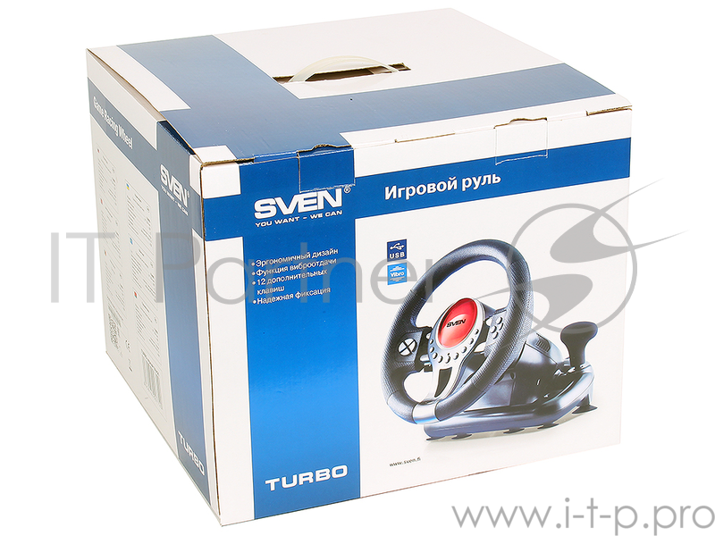 Руль SVEN TURBO SV-063012 {Игровой руль, Vibration Feedback, рулевое колесо, педали, рычаг КПП., 8поз..перекл., 12кн., USB}