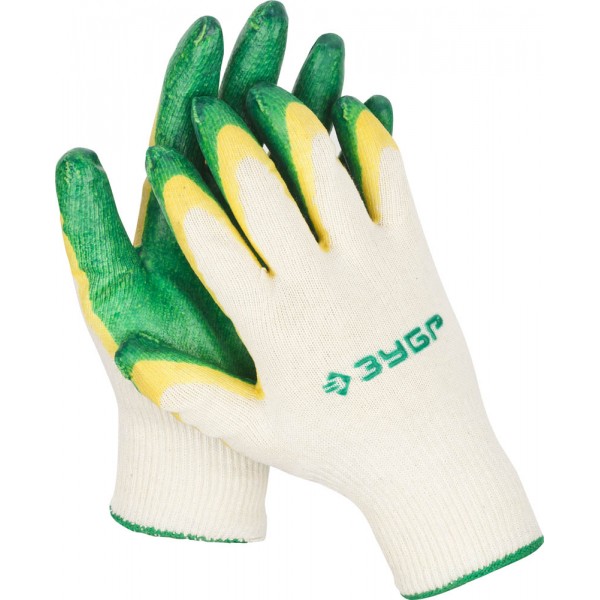 Перчатки ЗУБР МАСТЕР трикотажные, 13 класс, х/б, двойная обливная ладонь из латекса, L-XL, 10 пар [11459-K10]