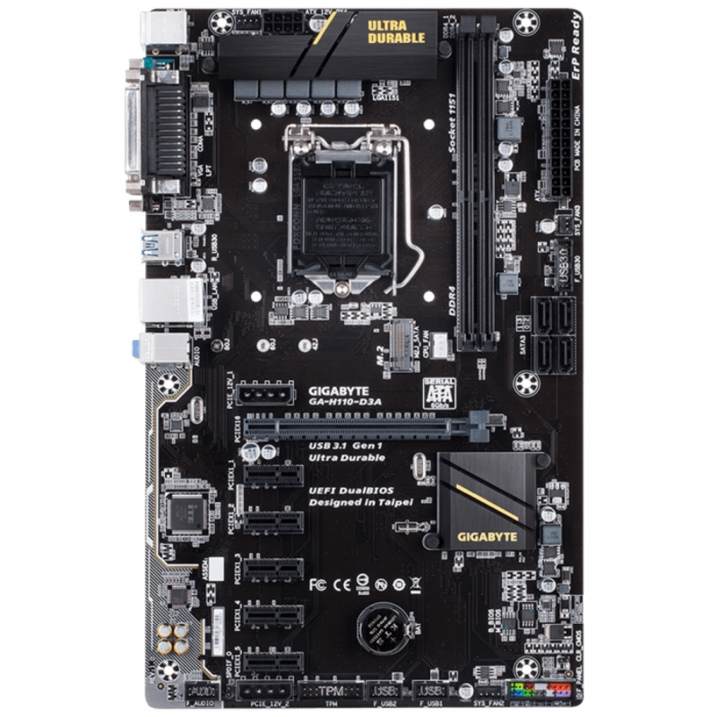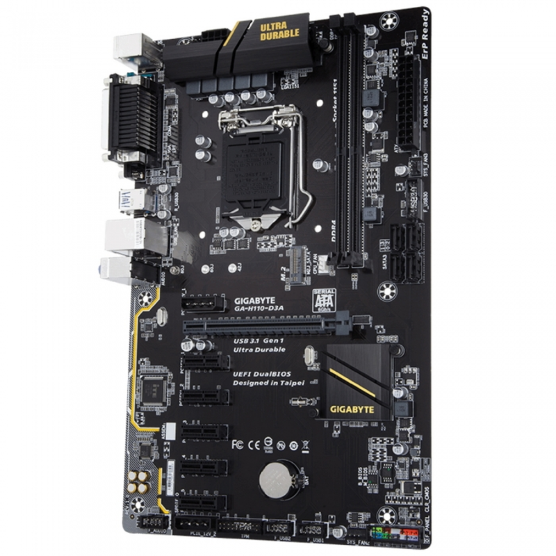 Материнская плата Gigabyte GA-H110-D3A, Socket 1151, Intel®H110, 2xDDR4-2133, D-SUB, 1xPCI-Ex16, 5xPCI-Ex1, 4xSATA3, 1xM.2, 8 C