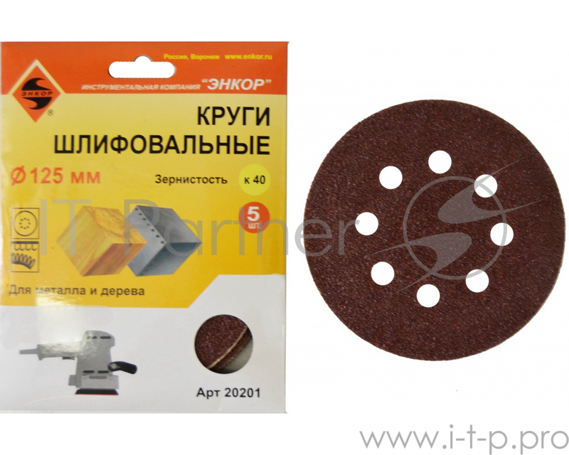 Круг шлифовальный ЭНКОР 20201 ф125мм К40 дерево металл 5шт.