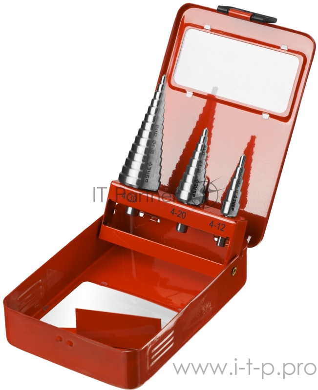 Набор ступенчатых сверл Зубр Мастер 29665-4-30-H3 d=4-12мм,5 ступ. d=4-20мм 9 ступ., d=4-30мм 14ст