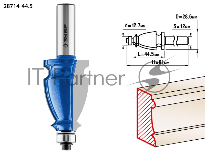 Фреза ЗУБР 28714-44.5 кромочная фигурная №3 d= 44.5мм дл.-28мм хв.-12мм d-12.7мм