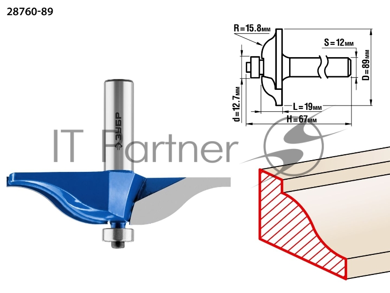 Фреза ЗУБР 28760-89 фигирейная №1 d= 89мм дл.-19мм рад.-15.8мм хв.-12мм d-12.7мм