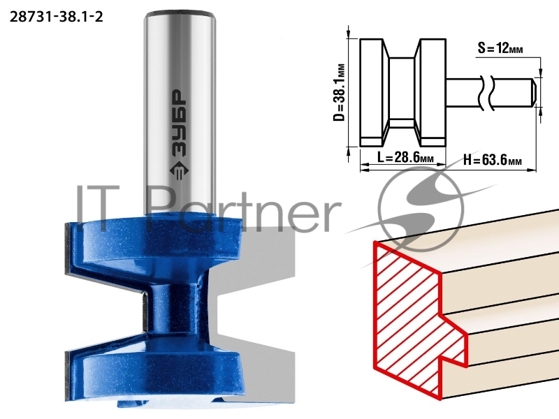 Фреза ЗУБР 28731-38.1-2 пазо-шиповая наборная d= 38.1мм рабочая длина-28.6мм хв.-12мм профессионал