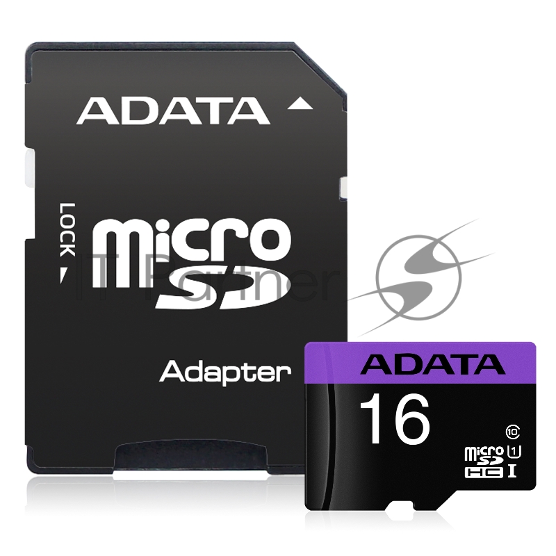 Карта памяти Micro SecureDigital 16Gb A-DATA AUSDH16GUICL10-RA1 {MicroSDHC Class 10 UHS-I, SD adapter}