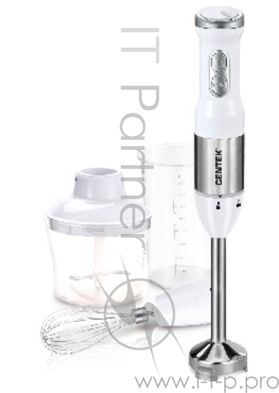 Блендер Centek CT-1309 белый (белый + сталь), 1000 Вт, РЕГУЛЯТОР СКОРОСТИ, стакан, чоппер, венчик