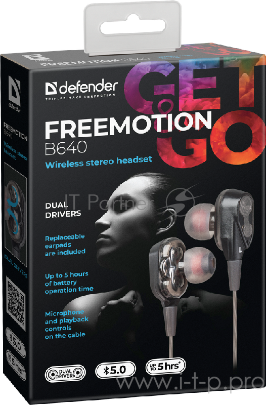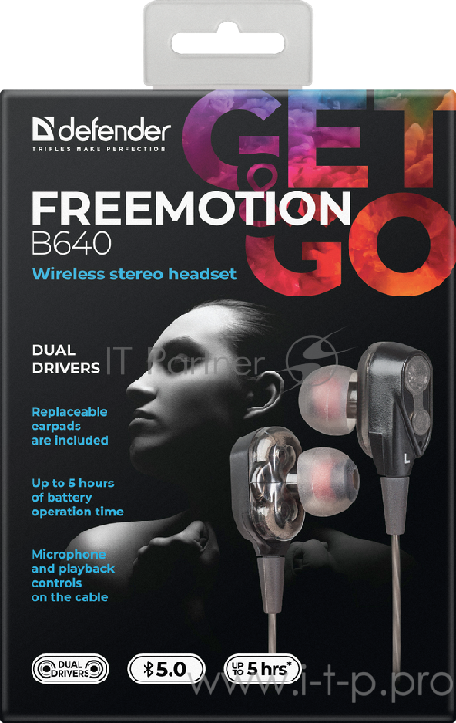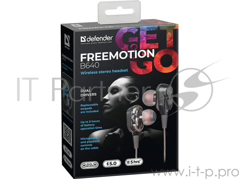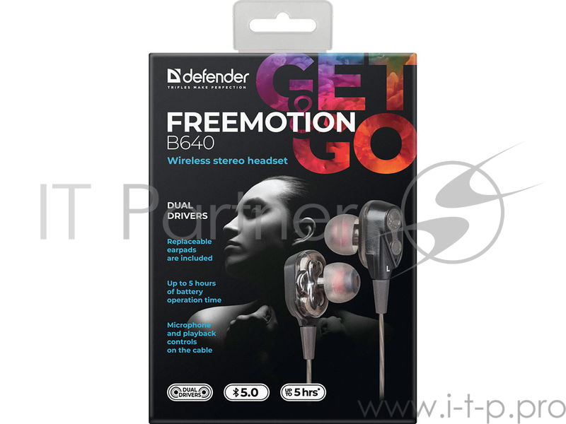 Беспроводная гарнитура Defender FreeMotion B640 вставная чёрная (Bluetooth, 5 часов, micro-USB)