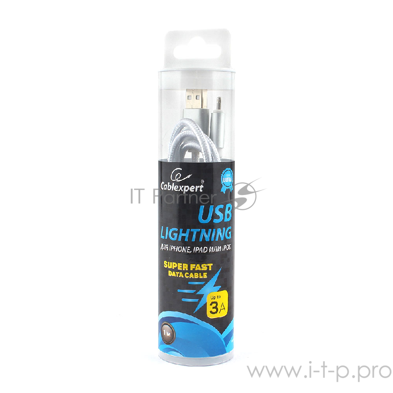 Кабель Cablexpert для Apple CC-U-APUSB02S-1M, AM/Lightning, серия Ultra, длина 1м, серебристый, блистер