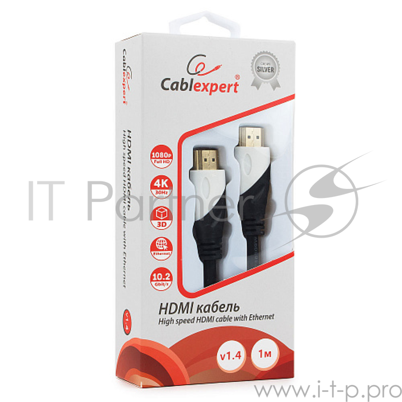 Кабель HDMI Cablexpert, серия Silver, длина 1 м, v1.4, M/M, позол.разъемы, коробка