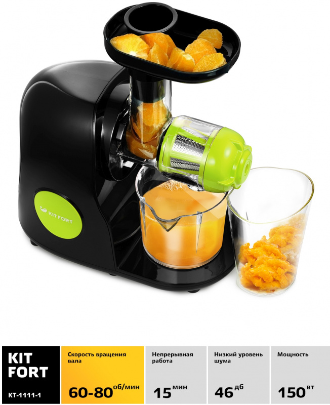 Соковыжималка шнековая Kitfort КТ-1111-1 150Вт черный/зеленый