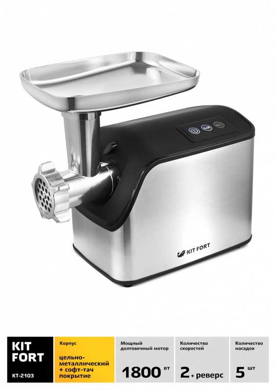 Мясорубка Kitfort КТ-2103 1800Вт серебристый/черный