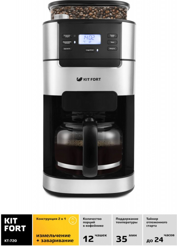 Кофеварка капельная Kitfort КТ-720 1050Вт черный/серебристый
