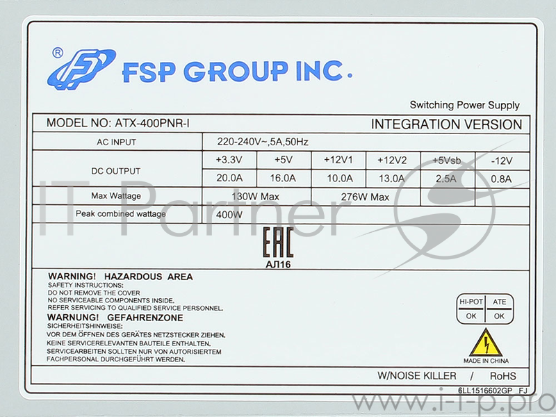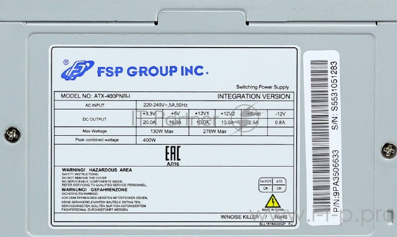 Купить Блок питания FSP 400-PNR-I в Коврове. Забрать в магазине "Ваш Компьютер" г.Ковров пр-т Ленина 20