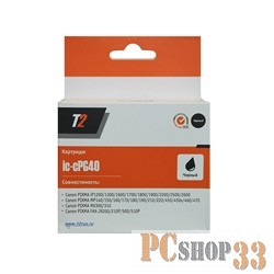 Расходные материалы T2 IC-CPG40 обладают следующими характеристиками: назначение - Для печатающих устройств; тип - Картридж; совместимые модели - Canon Pixma iP1200/1800/1900/2200/2500/2600/MP140/210/450/470/MX300.
