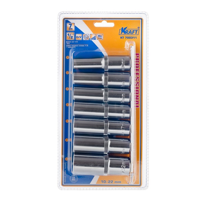 Набор головок торцевых KRAFT Высокие 7шт. 10-22 мм [KT 700311]