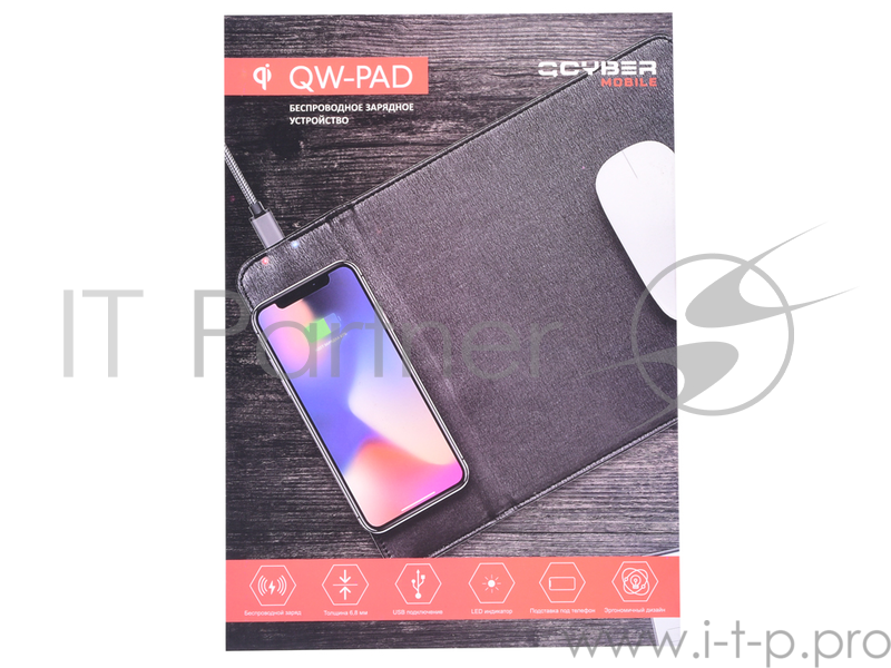 Универсальная беспроводная зарядка Qi Qcyber Mobile QW-PAD 5Вт. Доп. Функция - коврик для мыши