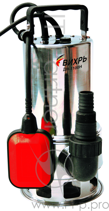 Насосы Вихрь ДН-1100Н 68/2/5 Дренажный насос { нерж. сталь 1100 вт, глуб-8 м, max-15,5 м/час, частицы-35 мм }