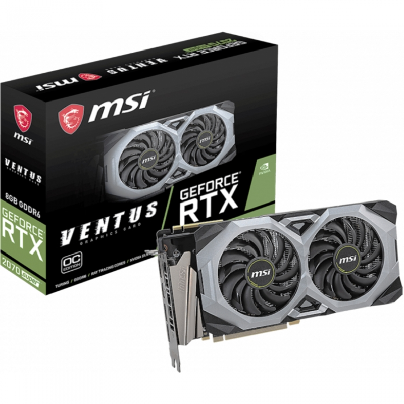 Видеокарта MSI PCI-E RTX 2070 SUPER VENTUS OC nVidia GeForce RTX 2070SUPER 8192Mb 256bit GDDR6 1410/14000/HDMIx1/DPx3/HDCP Ret
