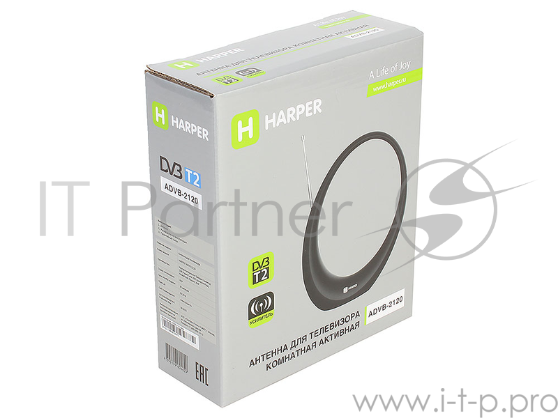 Телевизионная антенна HARPER ADVB-2120 (комнатная, активнаяDVB-T2 VHF / UHF (174–230 MHz, 470-862 MHz) 25 dB 75 3 dB питание-DVB-T2)