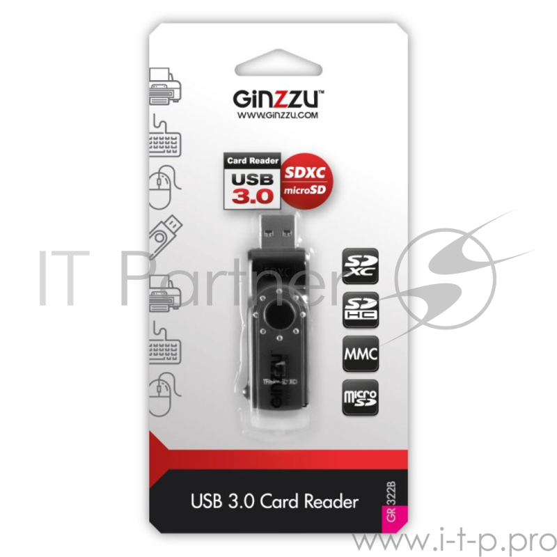 Устройство считывания USB 3.0 Card reader SDXC/SD/SDHC/MMC/microSD GR-322B Black