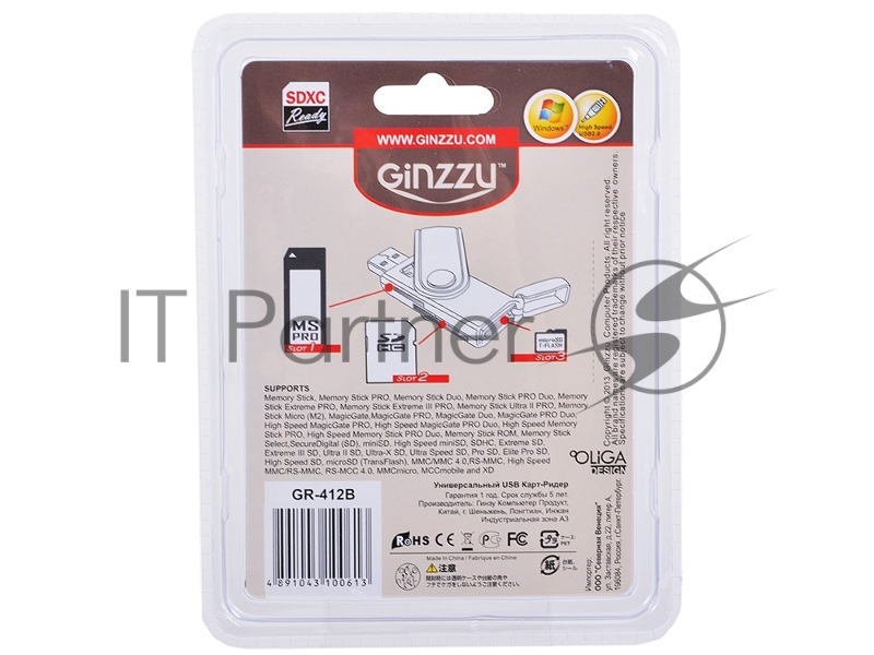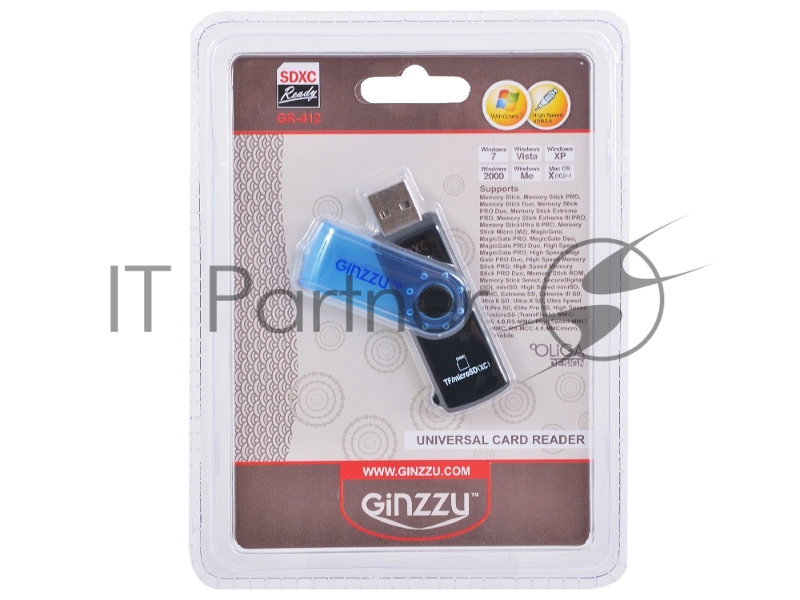 Устройство считывания USB 2.0 Card reader SDXC/SD/SDHC/MMC/MS/microSD/M2 GR-412B Black