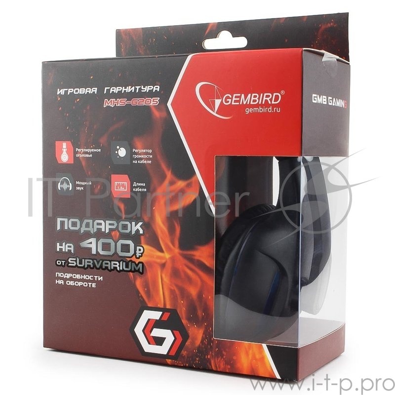 Гарнитура стерео Gembird MHS-G205 Survarium, черн/синий, рег громкости, каб 1.8м