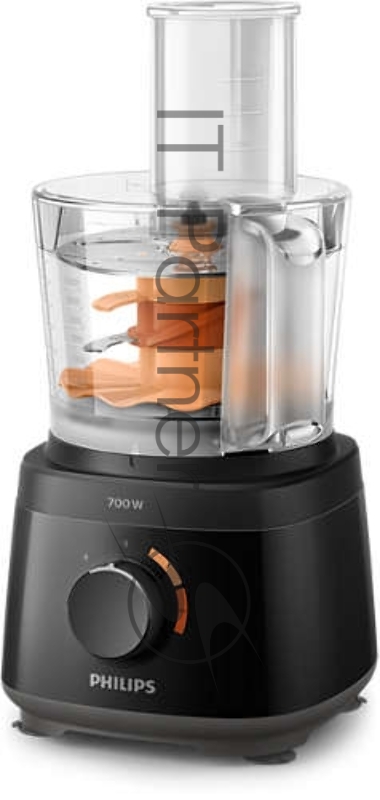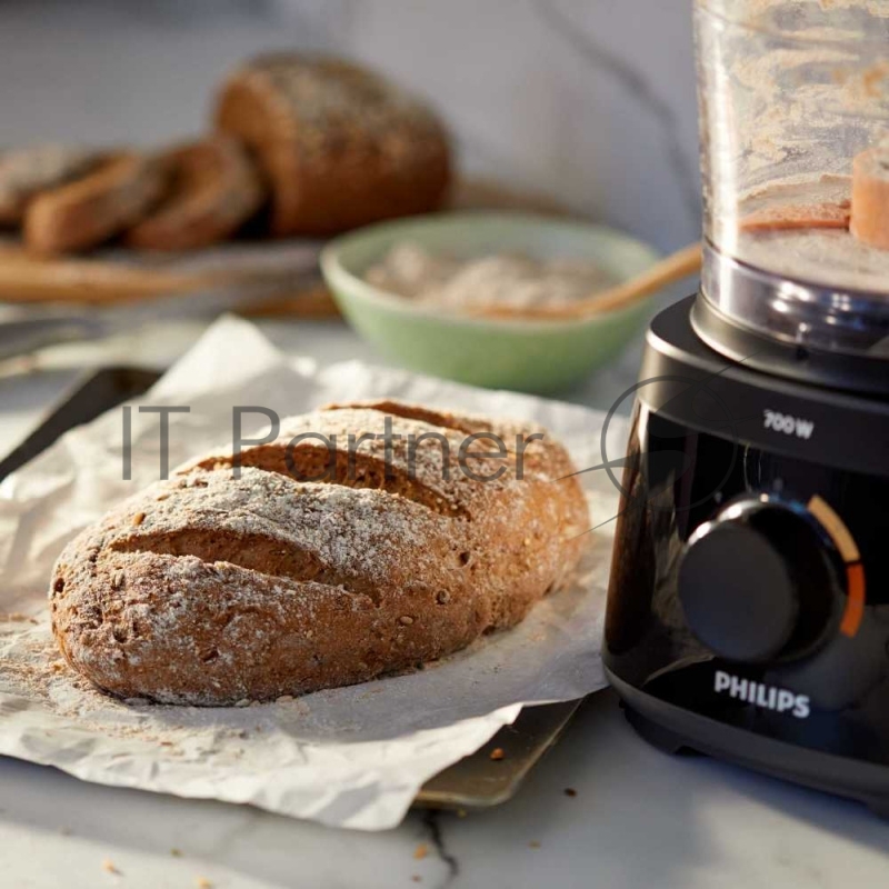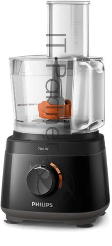 Кухонный комбайн Philips, мощность 700Вт, вместимость 1,5л, материал пластик, острый нож из нержавеющей стали в форме буквы "S", двухстронний диск из нержавеющей стали для нарезки и шинковки, насадка для взбивания, насадка для замешивания теста