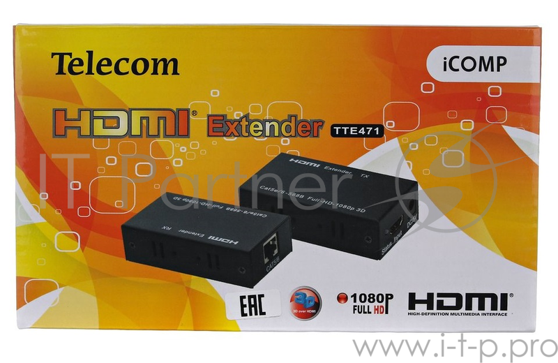 Удлинитель HDMI по витой паре до 60м 1080p@60HZ,3D,extender +2б.п. Telecom