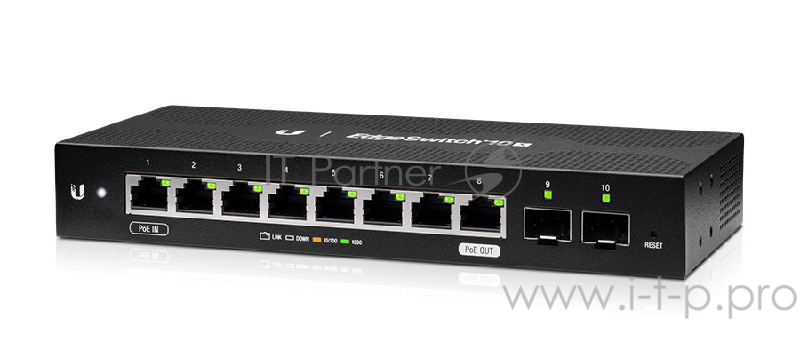 Коммутатор [ES-10X-EU] Ubiquiti EdgeSwitch 10X 8х 1GLAN, 2х SFP, питание по PoE на 1м порту, передача PoE на 8м порту