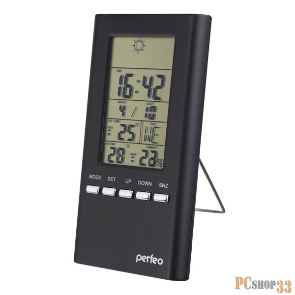 Часы-метеостанция Meteo, чёрный,(PF-S3331F) время, темп., датчик ул. темп., влажность
