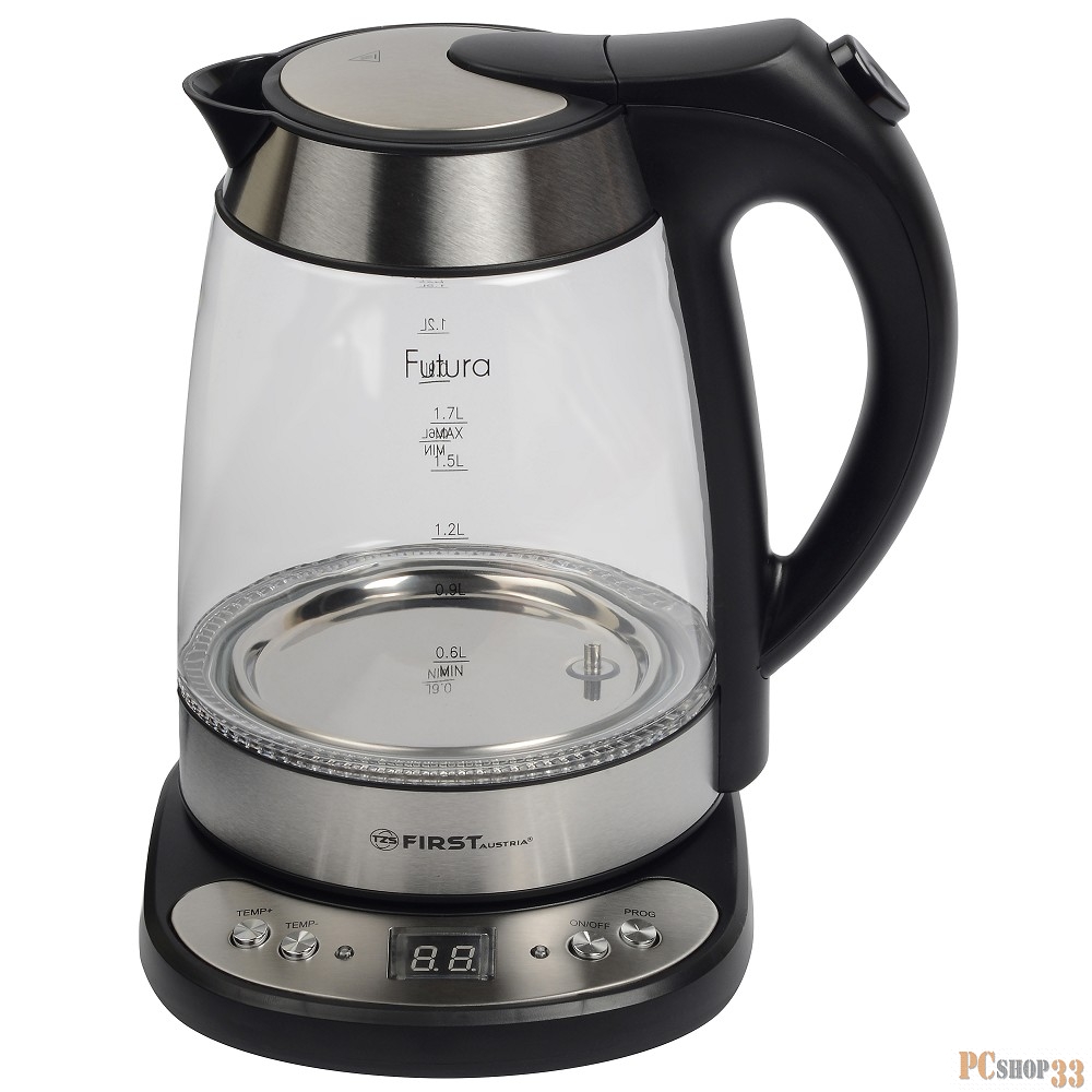 [Чайник] Чайник FIRST FA-5406-4 стеклянный, 1.7 л, база, 50-95 °С, подсветка, выбор температуры нагрева воды, Black