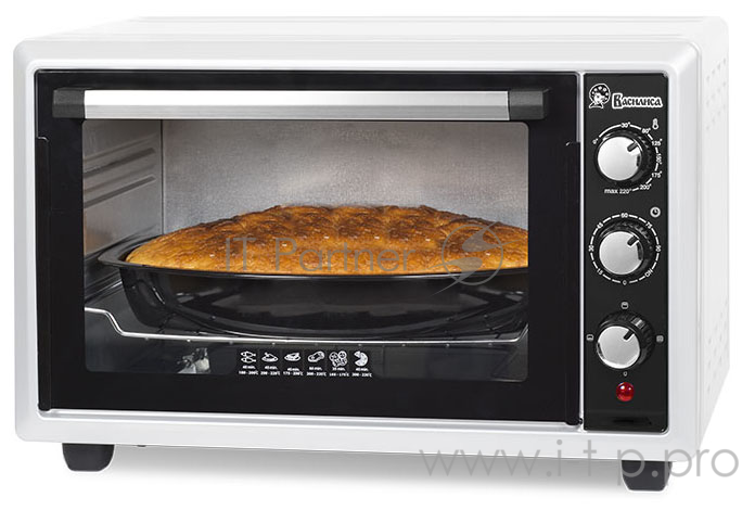 мини печь ВАСИЛИСА ВС-30 белый Мощность 1300 Вт. Внутренний объем 30 л. Тип нагревательного элемента ТЭН. Время разогрева до рабочей температуры 10 минут. Таймер 0-90 минут. Регулируемый термостат 50-320°С. Верхний и нижний открытые нагревательные эл
