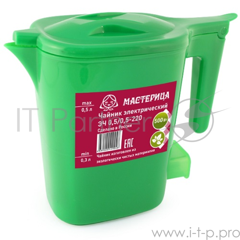Чайник электрический Мастерица ЭЧ 0,5/0,5-220З, пластиковый, зеленый, 0,5л, 500 Вт (в уп. 10 шт)