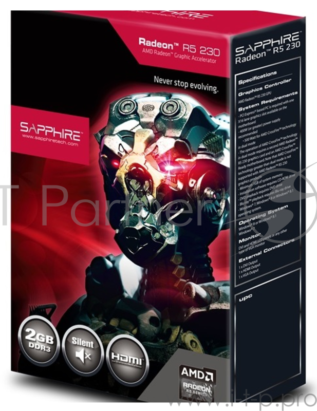 Видеокарта Sapphire Radeon R5 230 2GB DDR3 D-Sub+DVI+HDMI PCI-E (11233-02-10G) OEM