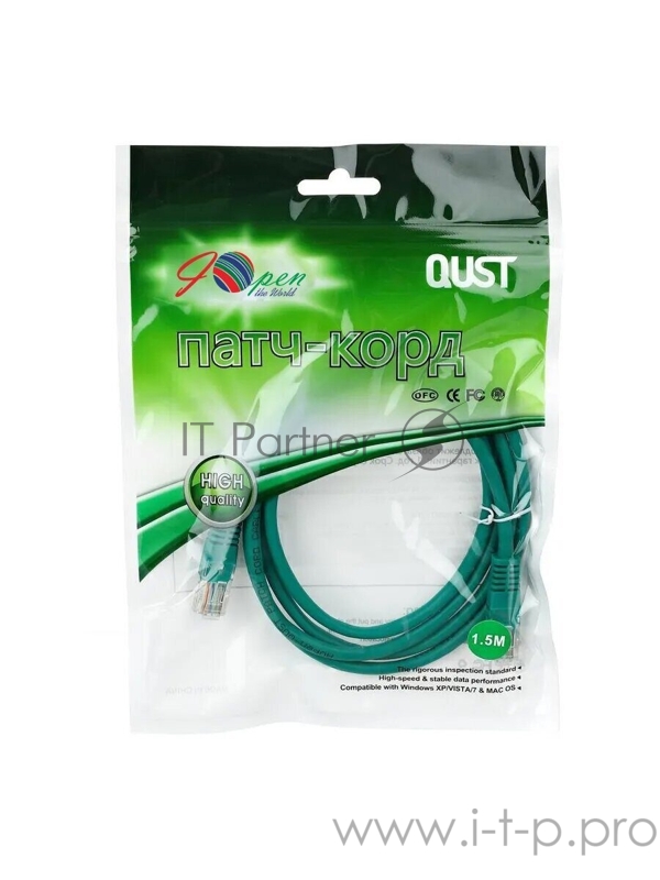 Патчкорд литой Aopen/Qust UTP кат.5е 1,5м зеленый