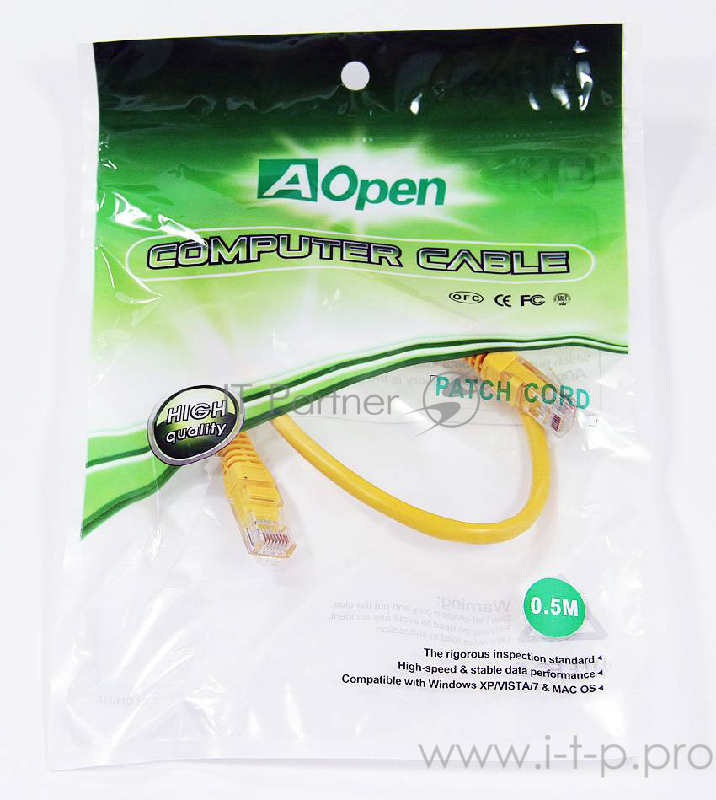 Патчкорд литой Aopen/Qust UTP кат.5е 0,5м желтый