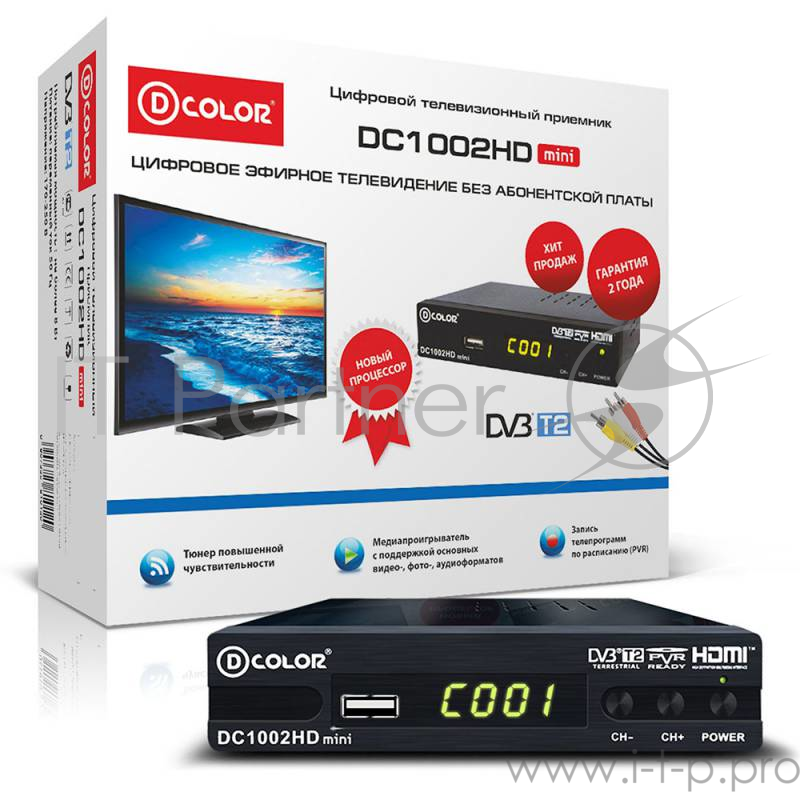 Ресивер DVB-T2 D-Color DC1002HD mini черный