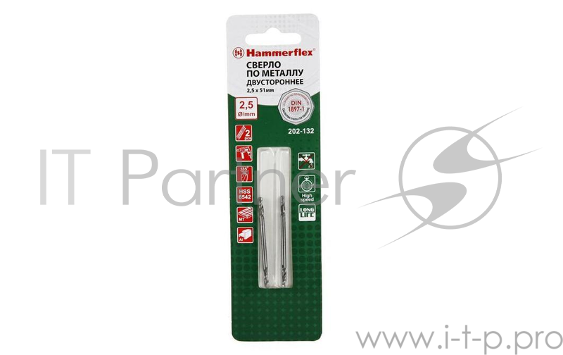 Сверло HAMMER Flex 202-132 DR MT 2,5мм*51 двухстороннее, металл, HSS-6542, 2шт.
