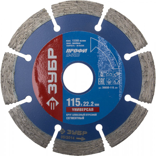 Круг алмазный ЗУБР 36650-115_z01 Ф115х22мм сухой рез сегментный универсальный
