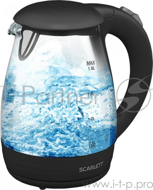 Чайник Scarlett, SC-EK27G61 черный, стекло Стекло, 1,8л, 2200Вт, рифленое защита от включения без воды, подсветка, красный.