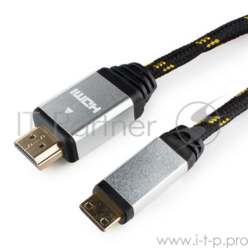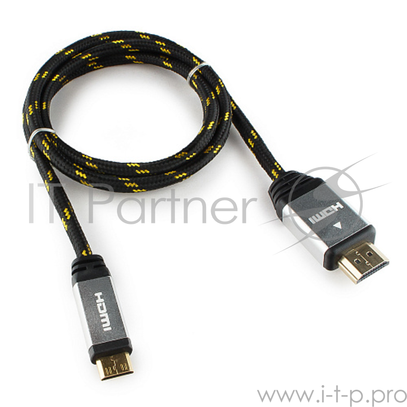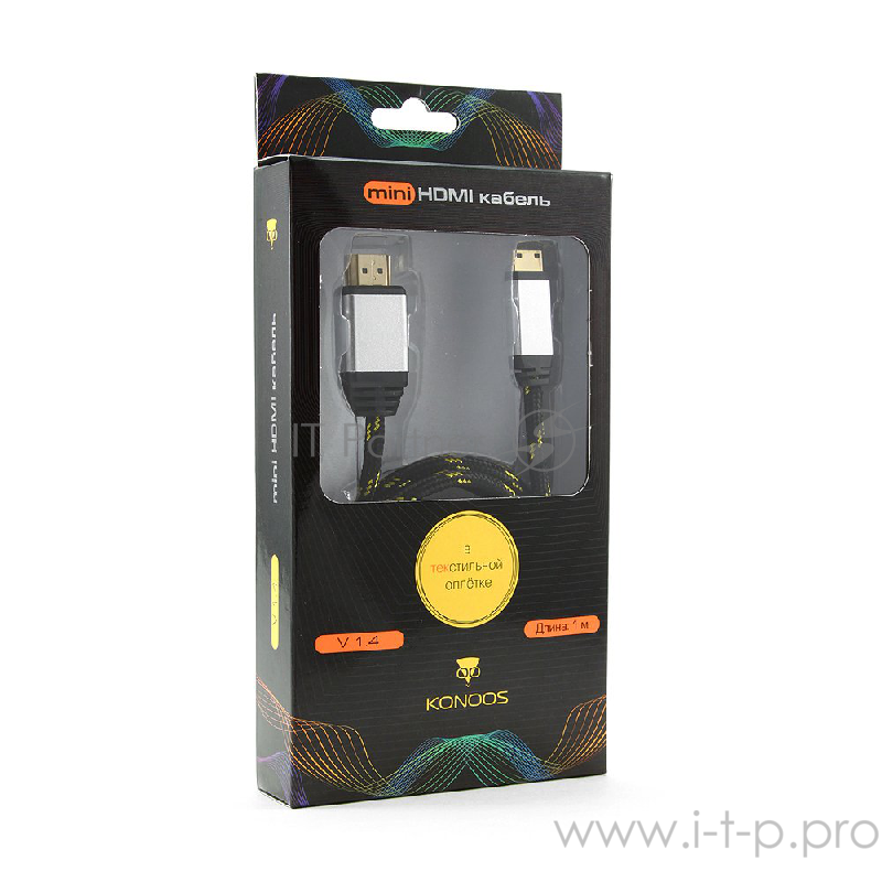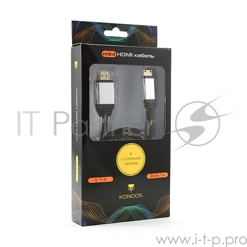 Кабель Konoos Кабель HDMI- miniHDMI KCP-HDMICnbk, 1м, v1.4, 19M/19M, алюмин. корпус, нейлоновая оплетка, черный, позол.разъемы, коробка