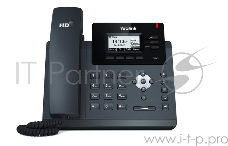 VoIP-телефон YEALINK SIP-T40G 3 SIP-аккаунта, 132x64 пикселя LCD-дисплей, 3-х сторонняя конференция, XML-браузер, Action URL/URI, 2 Ethernet-порта 10/100Мбит/с