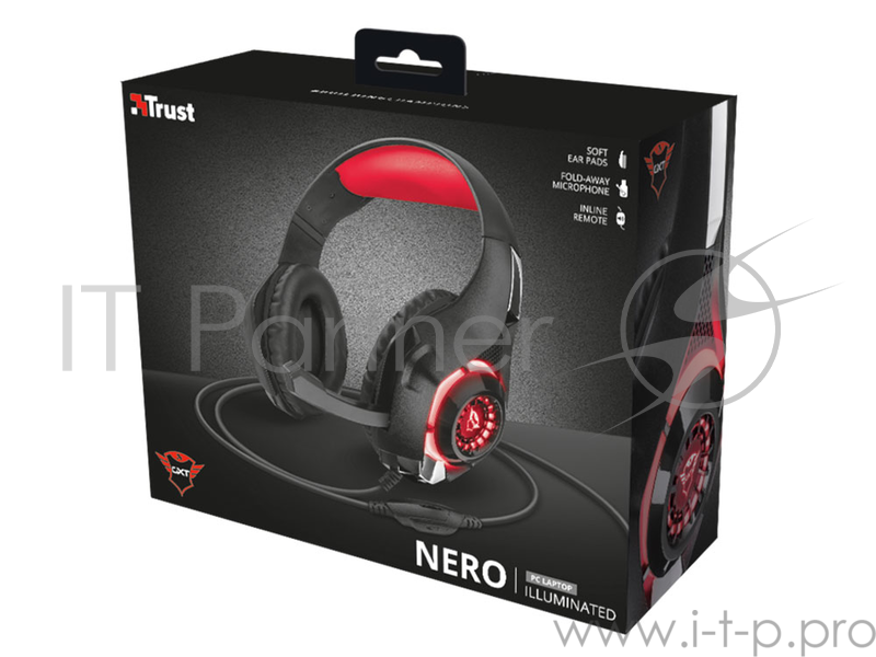 Гарнитура TRUST GXT 313 NERO black red (подсветка,дистанционное управление. Гибкий кабель (2 м). Mini-jack 3,5 мм)
