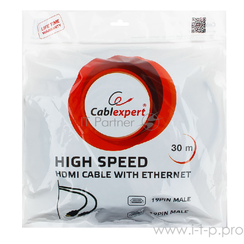 Кабель HDMI Cablexpert CC-HDMI4-30M, 30м, v1.4, 19M/19M, черный, позол.разъемы, экран, однонаправленный, пакет