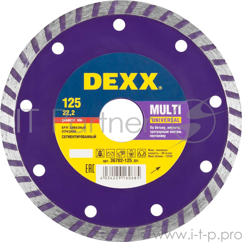 Круг алмазный DEXX 36702-125_z01 турбо сегментированный для УШМ 125х7х22.2мм