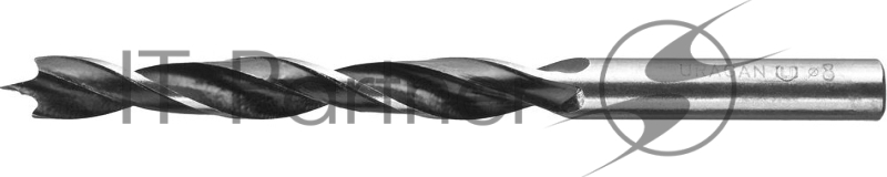 Сверло спиральное по дереву, М-образная заточка, сталь 45, URAGAN 29419-110-08, d=8 x 110мм [29419-110-08]