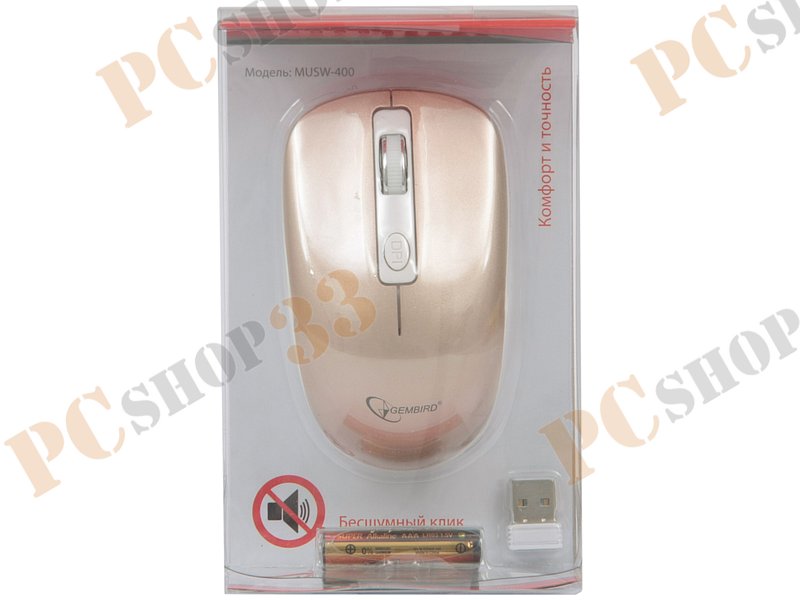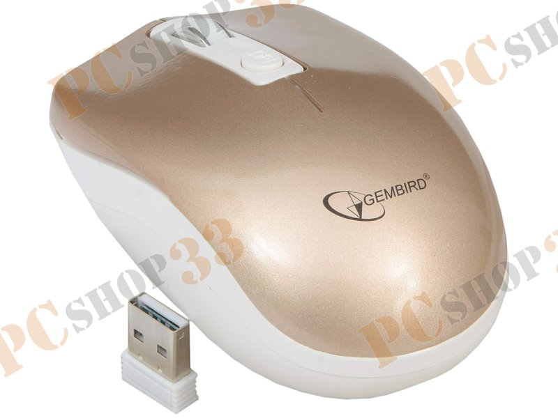 Оптическая мышь Gembird MUSW-400-G, беспров., 3кн.+скр., золотисто-белый (USB)